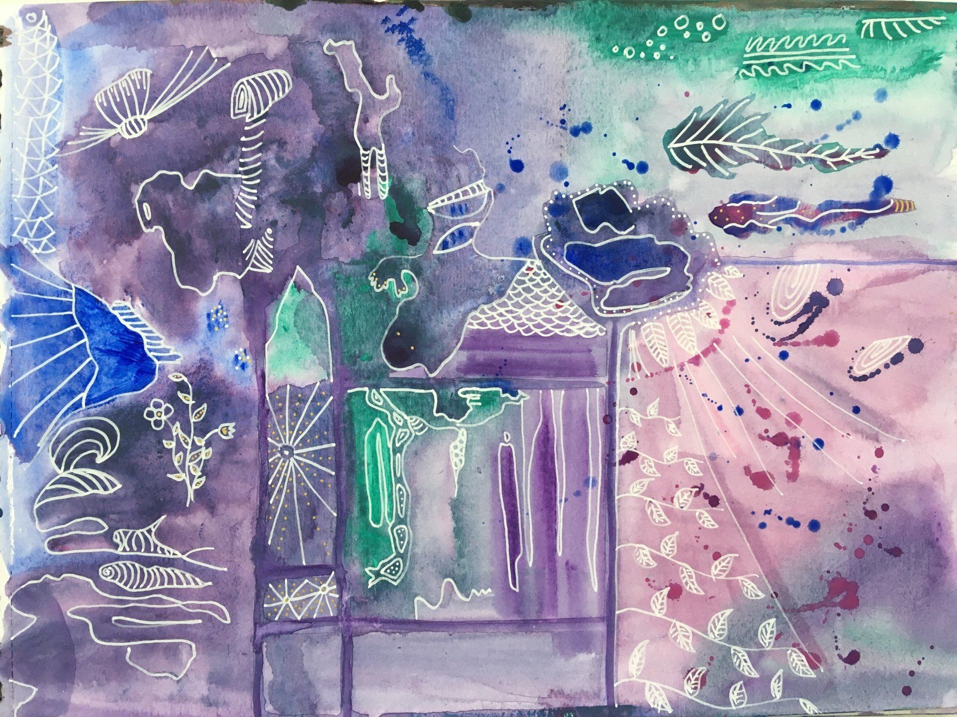 Mijn beeldend werk zie ik als weergaves van mijn innerlijke wereld, omdat ik mezelf probeer uit te drukken met kleuren en vormen. Door te reflecteren op mijn werk leer ik mezelf steeds beter kennen.